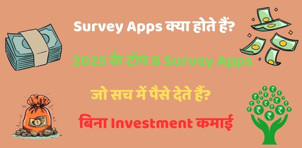 अगर आप भी रोजाना घर बैठे अपने फ़ोन से ₹500 या उससे अधिक की कमाई करना चाहते हो तो आपको मैं इस आर्टिकल में बताउगा कि आप कैसे कमा सकते है और कौन – कौन से 2025 के टॉप 8 Genuine Survey Apps है जिसमे आप बिना पैसा लगायें ही कमाई कर सकते है.